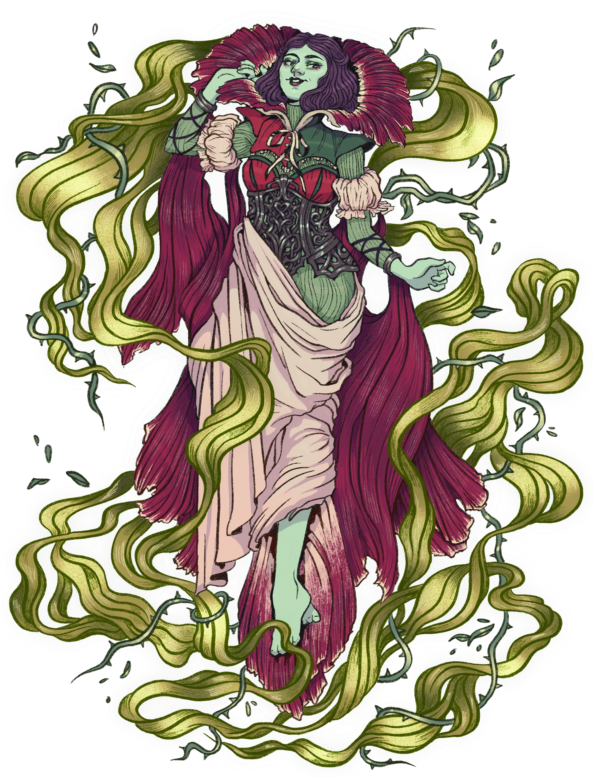 One thing that was cool about that character was when we were coming up with her whole shtick… it didn't really come together or click until you came up with a visual aesthetic for it, which was the corpse flower being the big inspiration. And then, once we had the corpse flower as the visual motif, that was what inspired the magical hook for the character, which was that she became impossibly magical once every millennium or so. It was a backwards way compared to how I normally think about characters, where instead of thinking of plot function and then what they look like, it was really the other way around, where you figured out the aesthetics first, and then it was, “oh, that informs the narrative.”