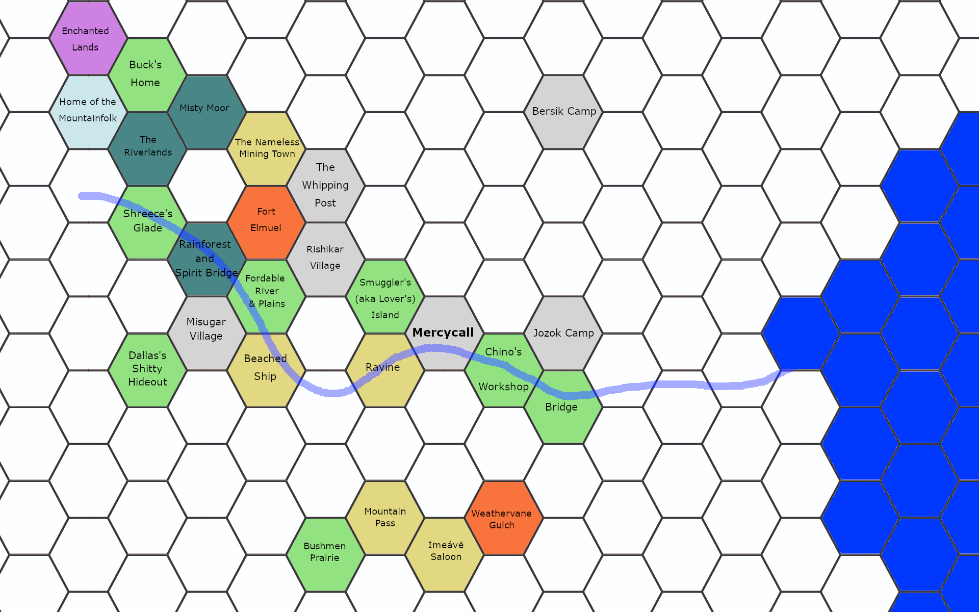 A frontier is a great play space for TTRPGs because the questions the environment poses can be answered implicitly through adventuring. The verbs your players employ directly relate to the inherent moral quandaries of a frontier. Does your party act as the violent arm of an imperial power? Do they resist and rebel? Do they act as protectors of the land? of peoples who can’t protect themselves? of a principle? Does your party reject issues of morality? If so, how do they decide what they ought to do? In a world where nothing is right or wrong, what motivates an adventure? Glory? Revenge? Inertia?